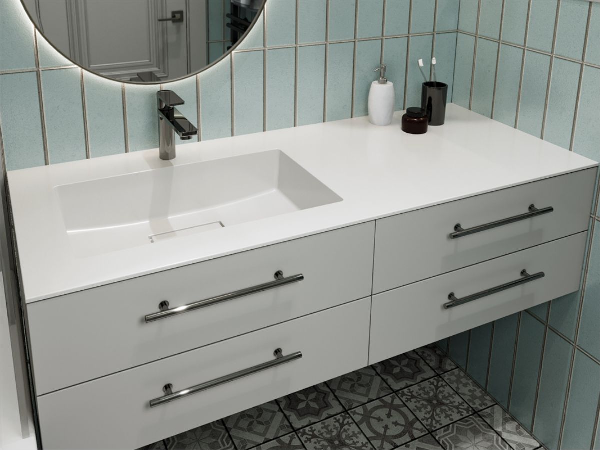Прямокутна за формою чаші раковина має тип монтажу - накладний;врізний, врахуйте це перед замовленням меблів у ванну кімнату.