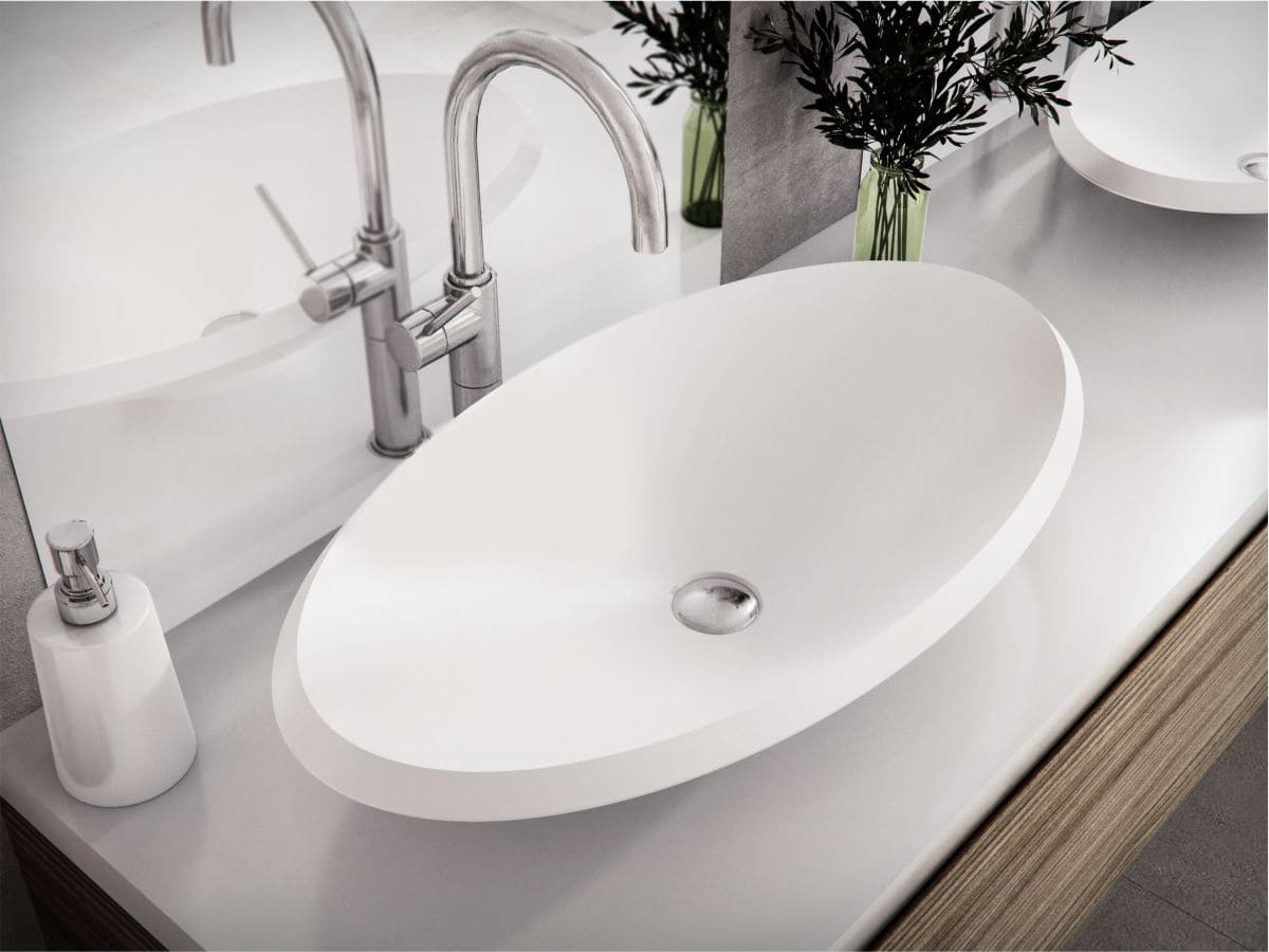 Глянцева раковина зі штучного каменю гармонійно доповнить дизайн сучасної ванної кімнати. Матеріал умивальника - Miramarble.