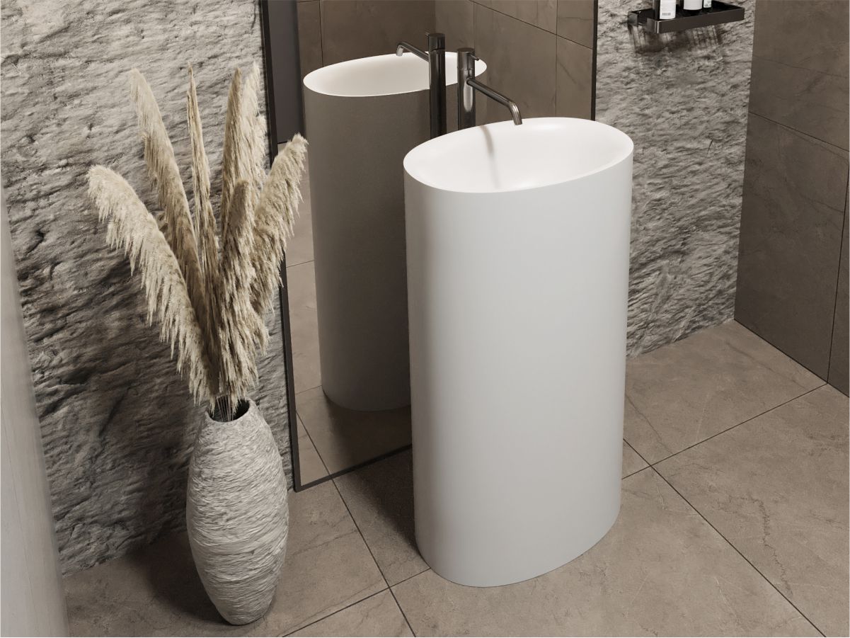 Матова раковина зі штучного каменю гармонійно доповнить дизайн сучасної ванної кімнати. Матеріал умивальника - Mirasoft Technology.