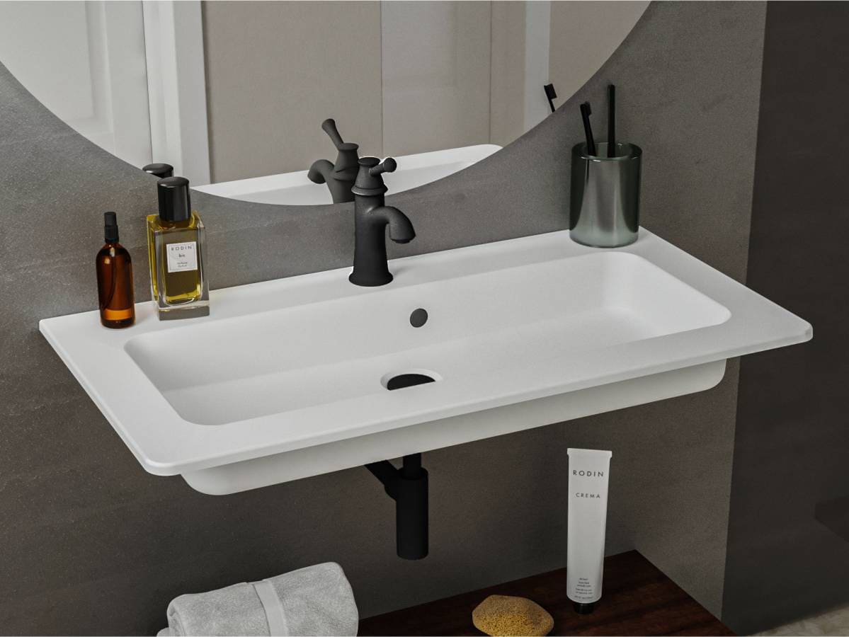 Прямокутна за формою чаші раковина має тип монтажу - підвісний, врахуйте це перед замовленням меблів у ванну кімнату.