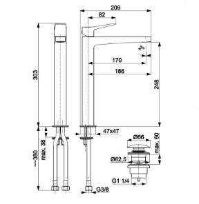 ARMATURA MALAGA Змішувач для умивальника настільний, в к-ті сифон click-clack, CHROME