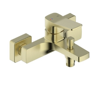 Стильний настінний змішувач для ванни у благородному золотому відтінку — ідеальне рішення для сучасних та преміальних інтер’єрів. Лаконічна геометрія та чіткі лінії підкреслюють мінімалістичний дизайн, а матове покриття надає виробу елегантного вигляду.