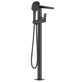 Ефектний підлоговий змішувач у матовому чорному виконанні — ідеальне рішення для окремостоячих ванн та сучасних інтер’єрів у стилі loft, minimal або industrial. Висока конструкція з чіткими геометричними лініями створює стильний акцент та підкреслює статус простору.