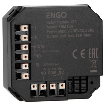 Розмір модуля дозволяє розмістити його в монтажній коробці прихованого монтажу. Його можна використовувати як реле управління котлом для опалювальної системи (логіка виходу «нормально відкритий»). (через смартфон та програму Engo Smart/Tuya).