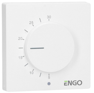 ENGO ESIMPLE230W - Дротовий добовий термостат, призначений для керування нагріванням/охолодженням, особливо корисний для теплих підлог з високою тепловою інерцією. Регулювати задану температуру в кімнаті можна за допомогою ручки. Завдяки вбудованим алгоритмам цей термостат забезпечує набагато кращу точність управління температурою, ніж традиційні механічні термостати.
