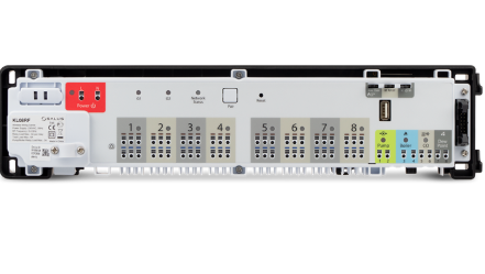 Центр комутації працює в безпосередньому з’єднанні з регуляторами серії SALUS Smart Home. Він оснащений виходами що управляють насосом і котлом - працює з сервоприводами NC або NO. В одній мережі ZigBee (Онлайн або Офлайн) можна під’єднати 9 центрів комутації KL08RF.