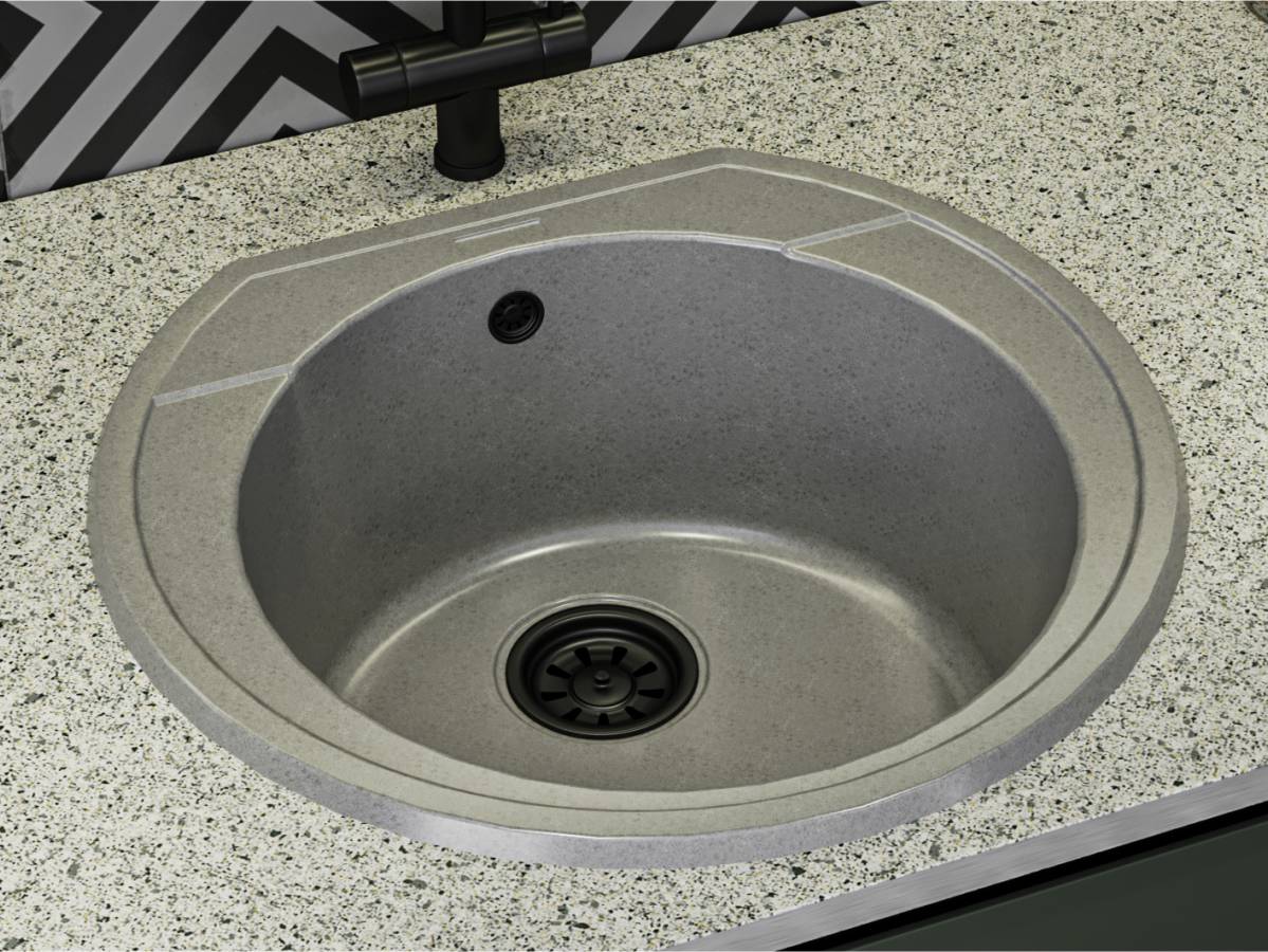 Кругла кухонна мийка TULUZA має однорідну текстуру та колір - сірий. Кількість чаш - 1. Тип установки - врізний. Матеріал мийки - Mirastone - не всочує запахи, відштовхує жир та забруднення, а також не змінює кольору в процесі експлуатації.