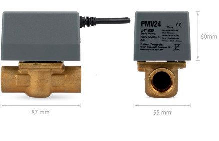 PMV21 – це 2-х ходовий запірний клапан з електричним приводом, різьблення 1”, призначений для керування потоком води у центральній опалювальній системі.