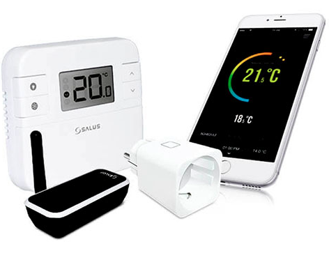 Salus RT310iSPE – являє собою систему керування опаленням, з можливістю керування віддалено у приміщенні (стаціонарно) та через інтернет. Salus RT310iSPE складається з бездротового програматора, інтернет шлюзу та бездротової розетки. Бездротова розетка підключається безпосередньо до електричних розеток (як розширення), це дає можливість користувачеві управляти будь-яким пристроєм, підключеним до цієї розетки.