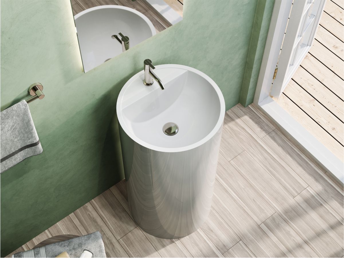 Матова раковина зі штучного каменю гармонійно доповнить дизайн сучасної ванної кімнати. Матеріал умивальника - Mirasoft Technology.
