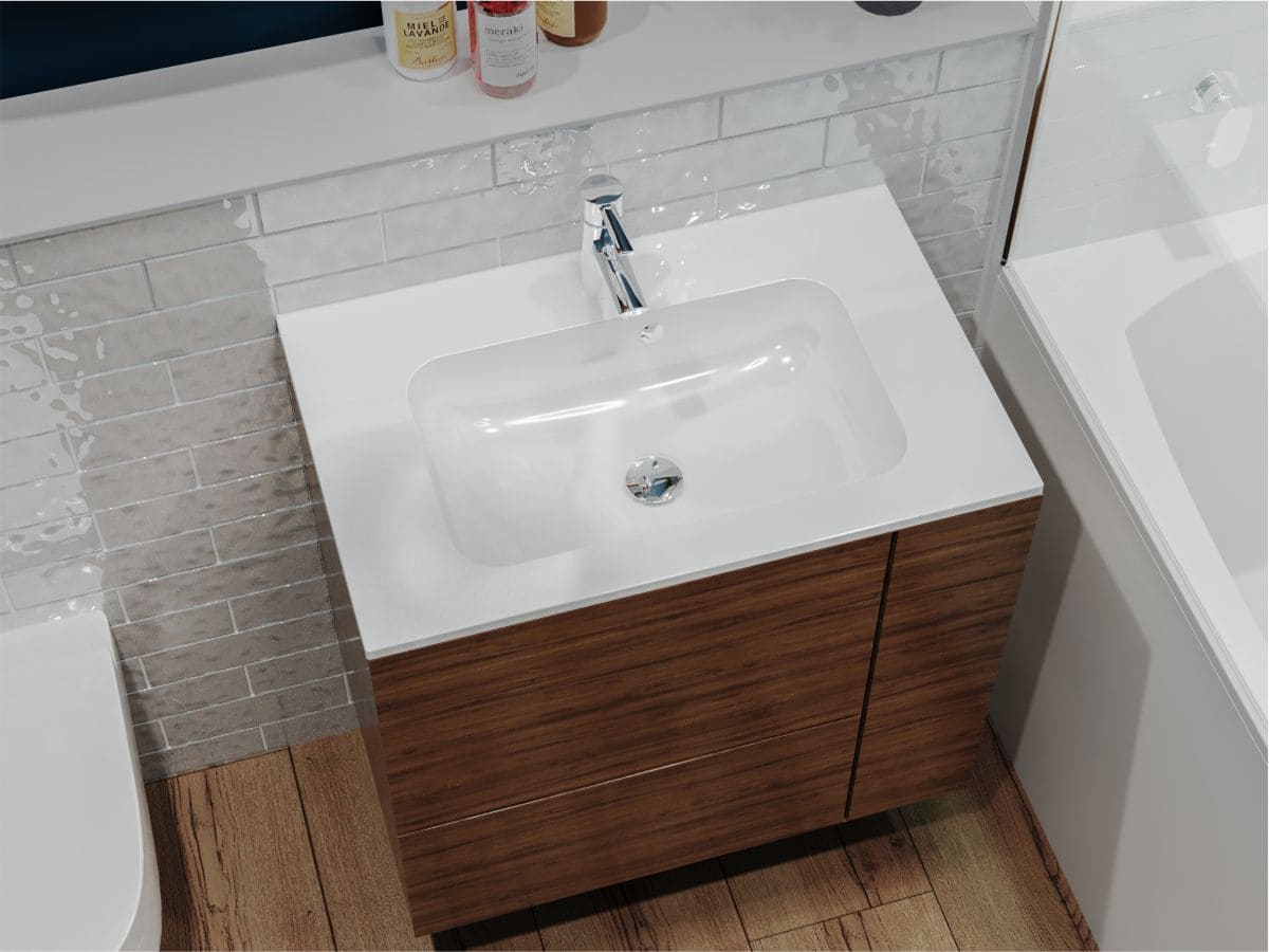 Прямокутна за формою чаші раковина має тип монтажу - накладний;врізний, врахуйте це перед замовленням меблів у ванну кімнату.