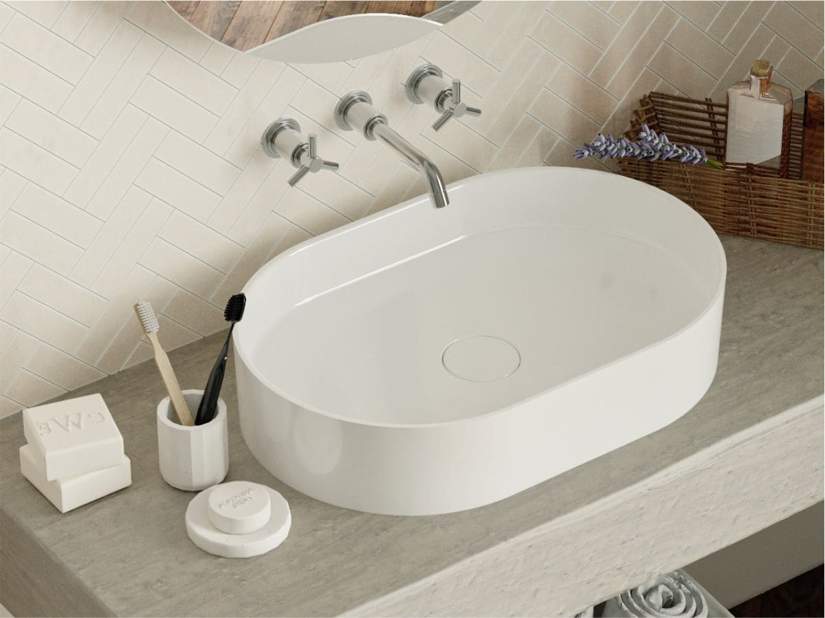 Овальна за формою чаші раковина має тип монтажу - накладний, врахуйте це перед замовленням меблів у ванну кімнату.
