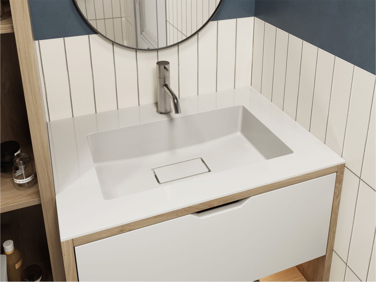 Прямокутна за формою чаші раковина має тип монтажу - накладний;врізний, врахуйте це перед замовленням меблів у ванну кімнату.