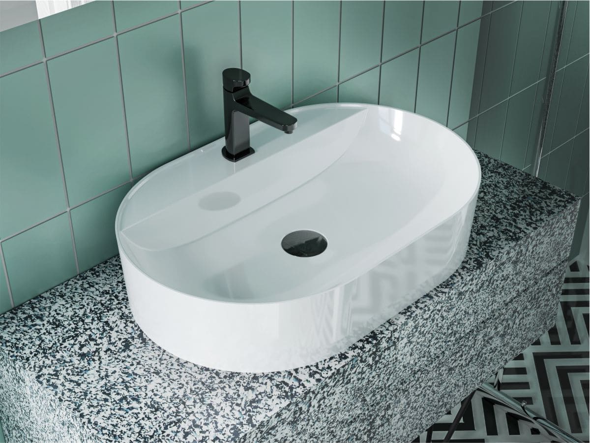 Глянцева раковина зі штучного каменю гармонійно доповнить дизайн сучасної ванної кімнати. Матеріал умивальника - Miramarble.