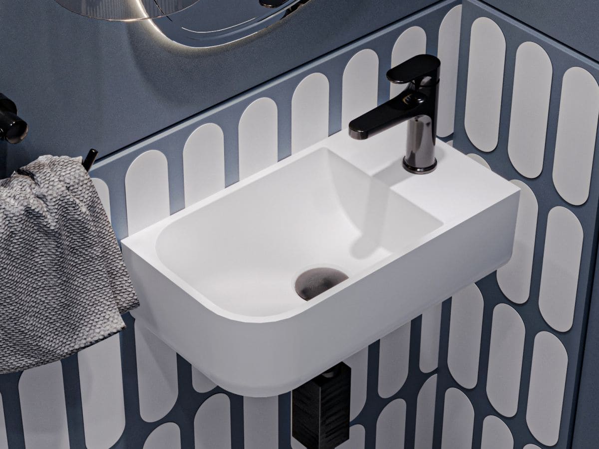 Глянцева раковина зі штучного каменю гармонійно доповнить дизайн сучасної ванної кімнати. Матеріал умивальника - Miramarble.