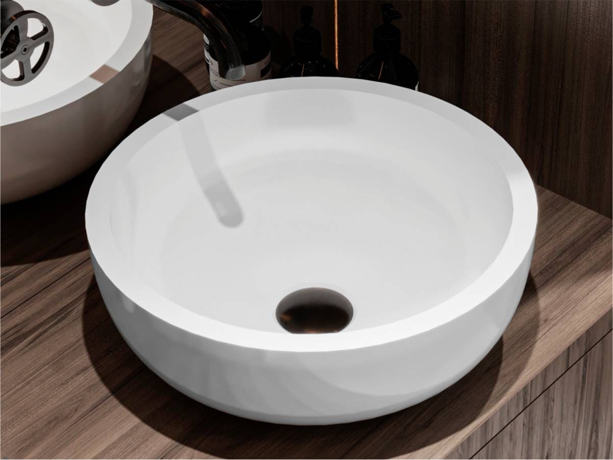 Глянцева раковина зі штучного каменю гармонійно доповнить дизайн сучасної ванної кімнати. Матеріал умивальника - Miramarble.