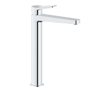 Сучасний високий змішувач для накладного умивальника — стильне рішення для ванних кімнат у сучасному та мінімалістичному стилі. Завдяки подовженому корпусу він ідеально підходить для умивальників-чаш, встановлених на стільниці.