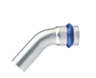 Коліно ASG INOX внутрішньо зовнішнєпризначене для зміни напрямку трубопроводу під кутом 45° з одночасним переходом між внутрішнім та зовнішнім підключенням.Використовується у системах опалення,водопостачання та інших інженерних мережах,де необхідне компактне та надійне рішення для повороту труби.