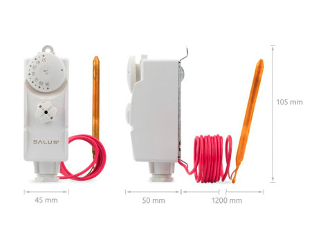 AT10F Механічний термостат для настінного монтажу, оснащений зовнішнім термодатчиком (капілярною трубкою). Має регулятор, за допомогою якого можна легко змінити і контролювати температуру в контурі системи опалення або циркуляційного насоса. Може використовуватися для вмикання циркуляційних насосів, котла або запуску зональних клапанів чи клапанів перемикання під час наповнення резервуарів циркуляційного насоса.