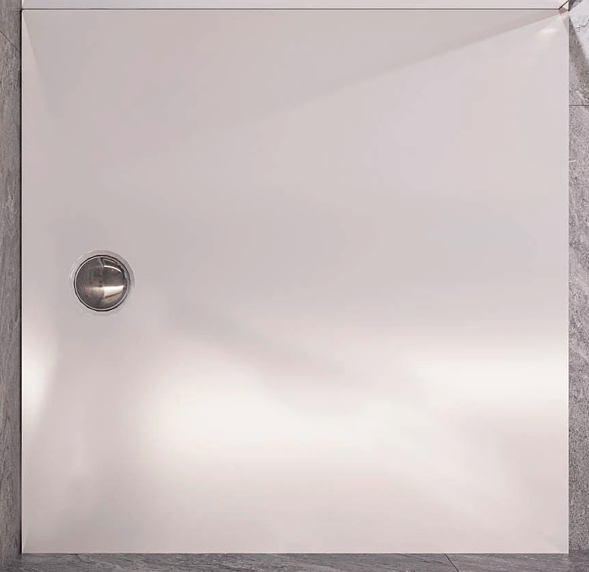 Модель- BRUGGE 900 Матеріал- MIRAMARBLE Форма- квадрат Колір-білий Тип поверхі -Глянець Довжина-900 Ширина -900 Висота- 26мм Діаметр зливного отвору 95 Вага 28,45