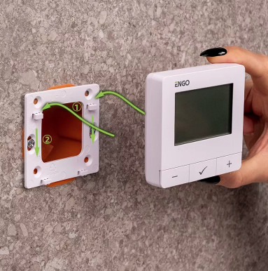 Терморегулятор Engo E25-230W (білий) поверхневого монтажу використовується для керування теплою системою підлоги та радіаторного опалення. E25-230W простий у встановленні, експлуатації та зручний для користувача. Програмований та керований через програму ENGO Smart, використовуючи шлюз ZigBee 3.0 – EGATEZB.