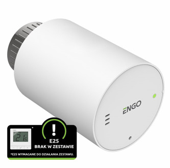 TRV (бездротова головка клапана) для управління радіаторним опаленням – це чудова заміна традиційної ручної головки термостатичного клапана. Для належної роботи необхідне сполучення з терморегулятором E25. До одного такого контролера можна під’єднати до шести TRV головок в одній кімнаті. Двосторонній зв’язок між пристроями відбувається кожні кілька хвилин за допомогою радіосигналів (868 МГц). На основі зібраних даних терморегулятор модулює ступінь відкриття головки клапана. Такий алгоритм забезпечує рівномірний обігрів усієї кімнати. Наявність у терморегулятора модуля ZigBee 3.0 і використання інтернет-шлюза, дозволяє віддалено керувати температурними режимами Ваших приміщень за допомогою додатку ENGO Smart.