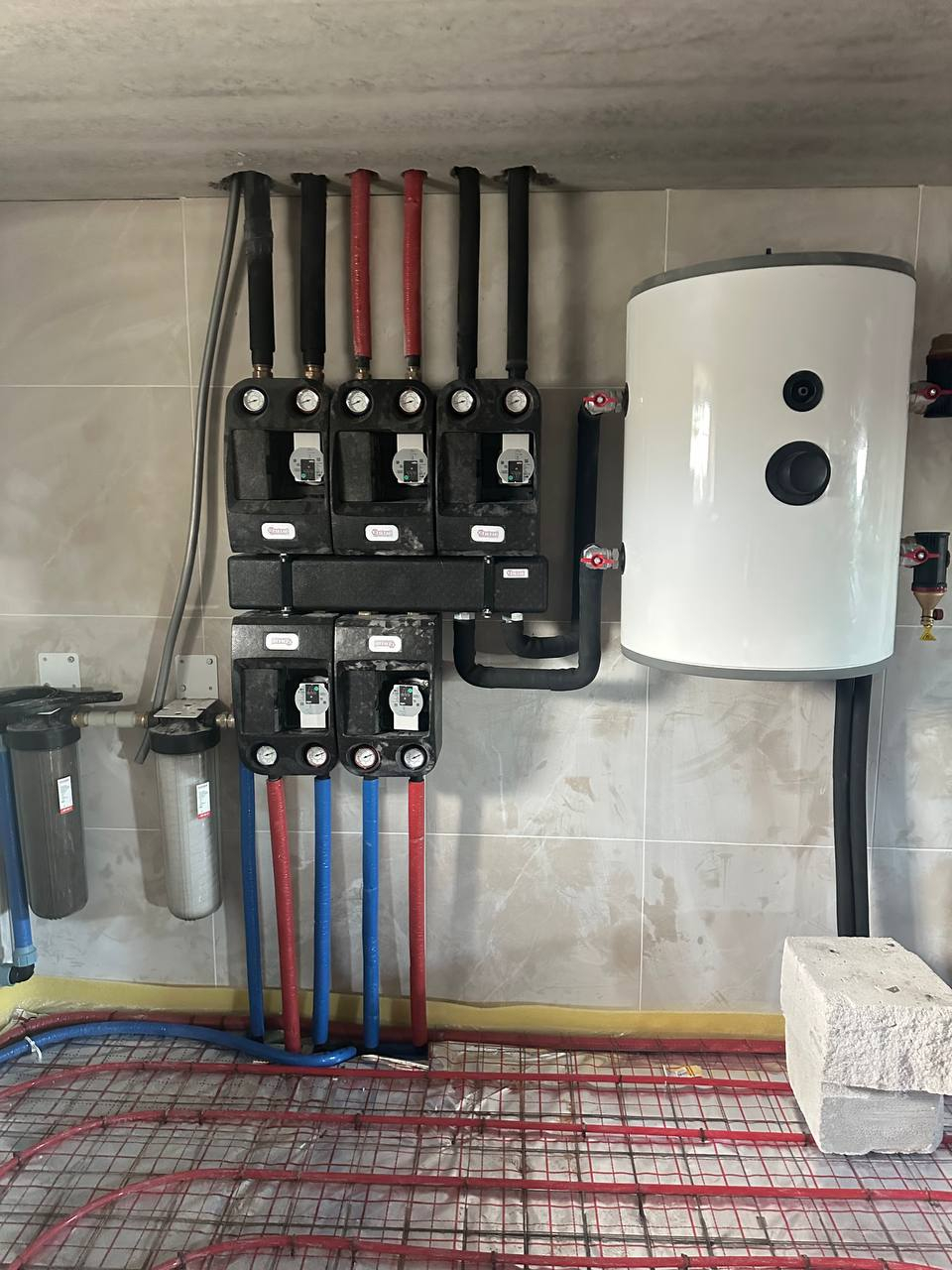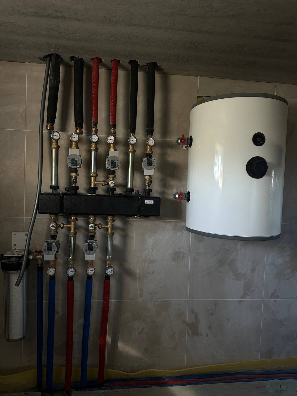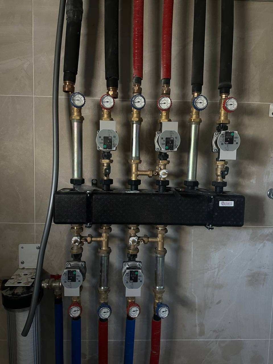Змонтували насосні групи BARBERI. Це ефективна розподільча система контурів з насосами та термометрами для точного регулювання на кожен поверх будинку.