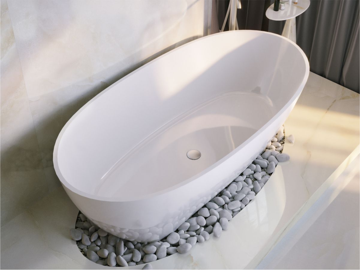 Ванна зі штучного каменю MIRAGGIO - ідеальний варіант доповнення сучасного інтер`єру ванної кімнати. Овальна;Чаша ванна ESTELLA з матеріалу Miramarble - це досконале творіння за дизайном та функціональністю. Поверхня ванни - глянцева. Тип встановлення ванни - окремостояча.