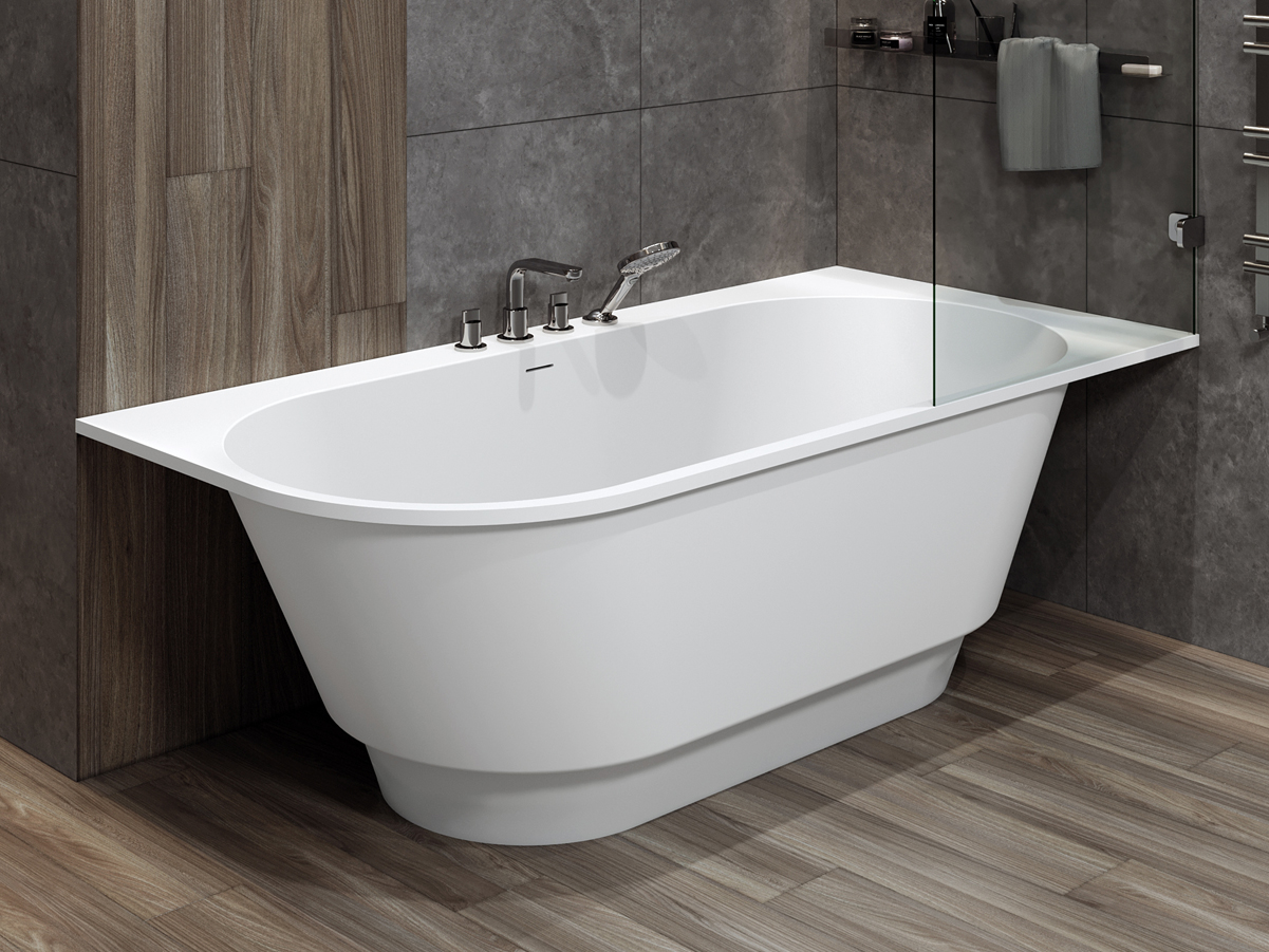 Штучний камінь - міцний і довговічний матеріал. Основним компонентом суміші є мелена мармурова крихта або боксит, які змішують із поліефірними смолами. У структурі ванни відсутні мікропори, що унеможливлює розвиток бактерій у товщі стінок.