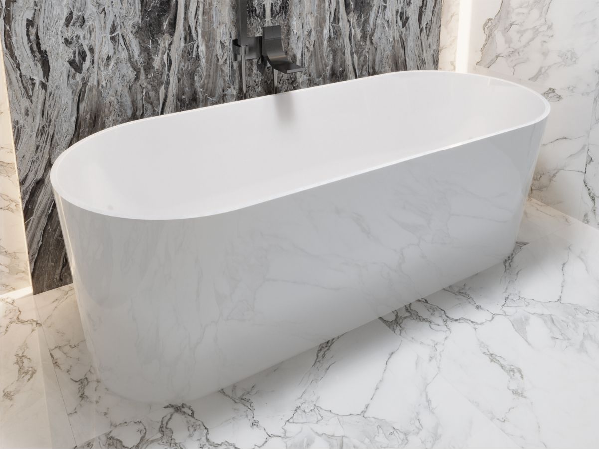 Штучний камінь - міцний і довговічний матеріал. Основним компонентом суміші є мелена мармурова крихта або боксит, які змішують із поліефірними смолами. У структурі ванни відсутні мікропори, що унеможливлює розвиток бактерій у товщі стінок.