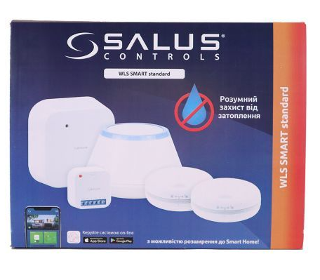 Комплект обладнання WLS Smart призначений для створення системи захисту від протікання з можливістю віддаленого керування та отримання повідомлень про наявність вологи у певних місцях. Залежно від необхідності датчики протікання можуть бути встановлені горизонтально на поверхні підлоги або вертикально на стіні за допомогою утримувача, що входить до комплекту. Датчики виявляють протікання на поверхні підлоги (безпосередньо під датчиком), або на клемах зовнішнього сенсора з кабелем (2 м), підключеного до датчика через утримувач і передають сигнал керування для перекриття крана з приводом, який входить в комплект. Завдяки підключенню до інтернет-додатку є можливість отримання безкоштовного повідомлення про витік та/або протікання через СМС та електронну пошту.